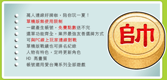 安裝方法非常簡單,只要您前往您App Store或Market搜尋"愛台灣歡樂暗棋" 就可以下載安裝最新版本的程式,Android玩家也可由此 下載檔案 ,然後複製到您 手機的SDCard即可完成安裝。注意Android需求至少為 2.2(含) 以上